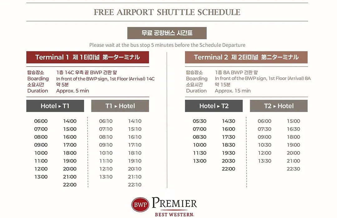 Offering an ATM and complimentary newspapers, the 4-star Best Western Premier Incheon Airport Hotel is merely a 12-minute walk from the Cimer spa complex. Offering 24-hour front desk assistance and wake-up service, the hotel also features Wi-Fi in public areas.